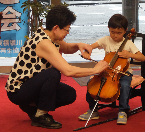 毎年恒例になりました、丸一商店音楽教室講師による弦楽器体験会。