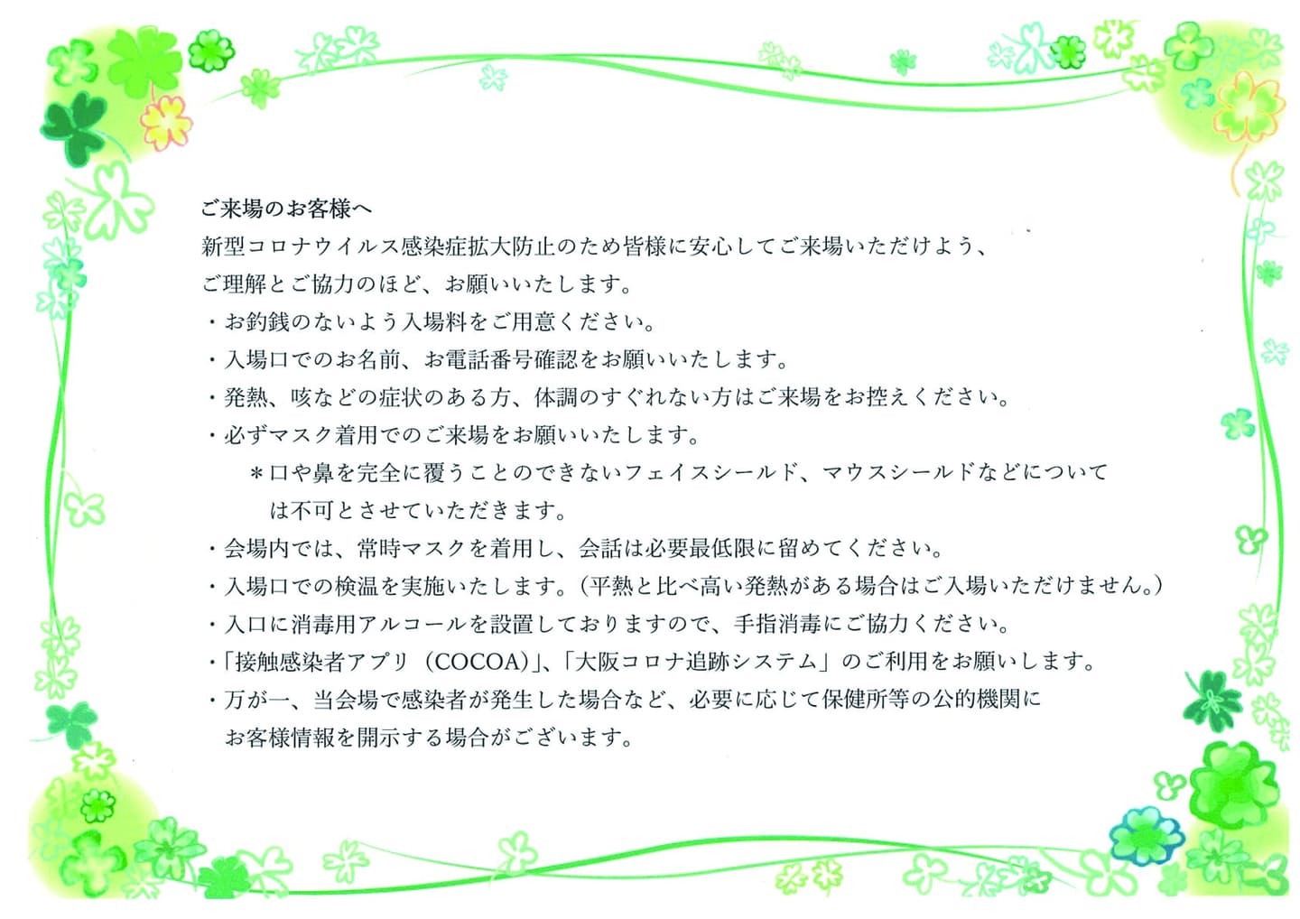 手指除菌液に加えギャラリーには自動検温器を設置しご来店の皆様にご協力をお願いしています