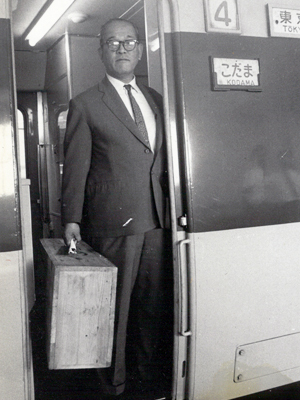 (Ex Park 1717)東京芸術大学へ納入 [写真] 初代 磻田一郎、Ex Park1717を携えて東京駅着 |